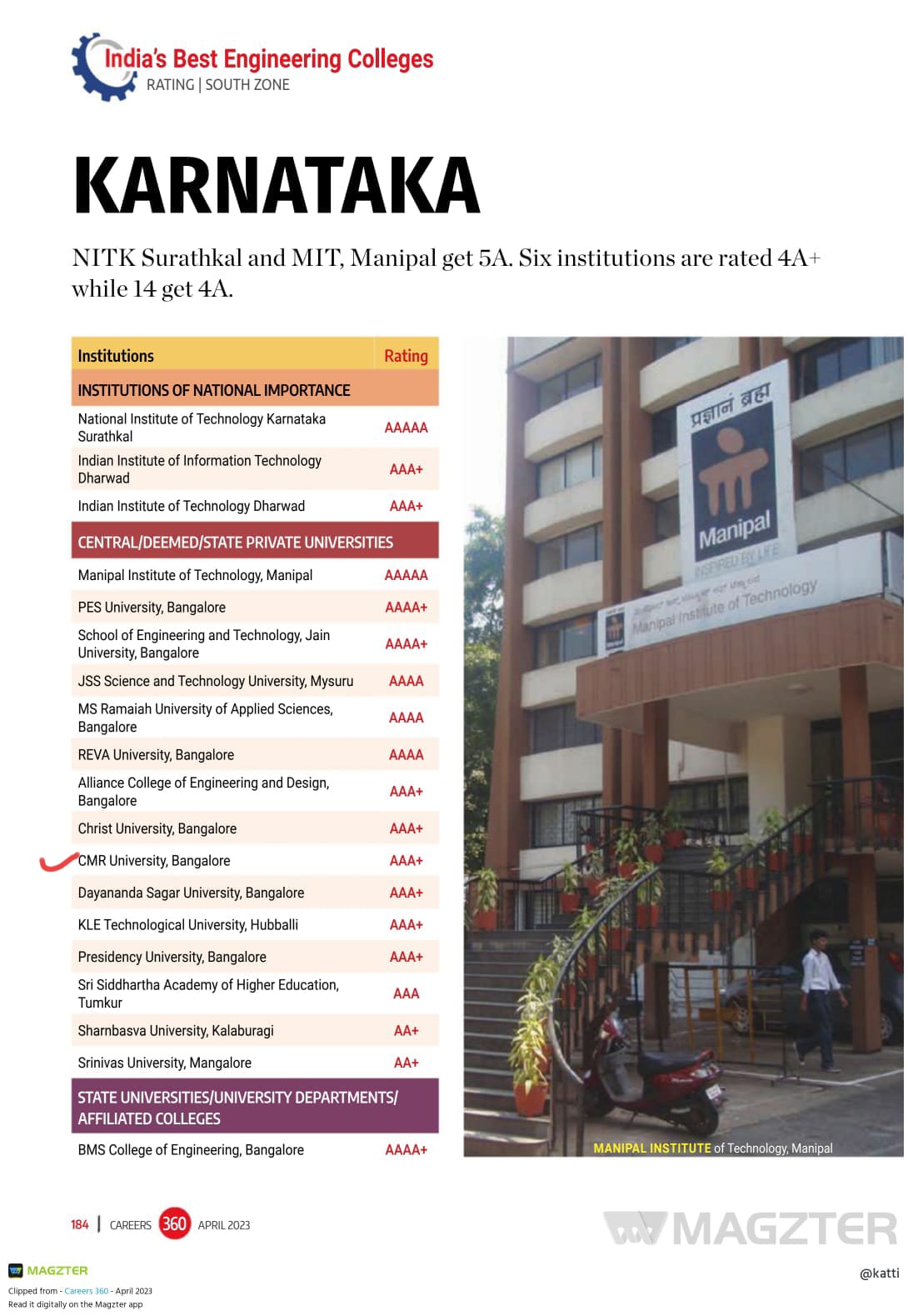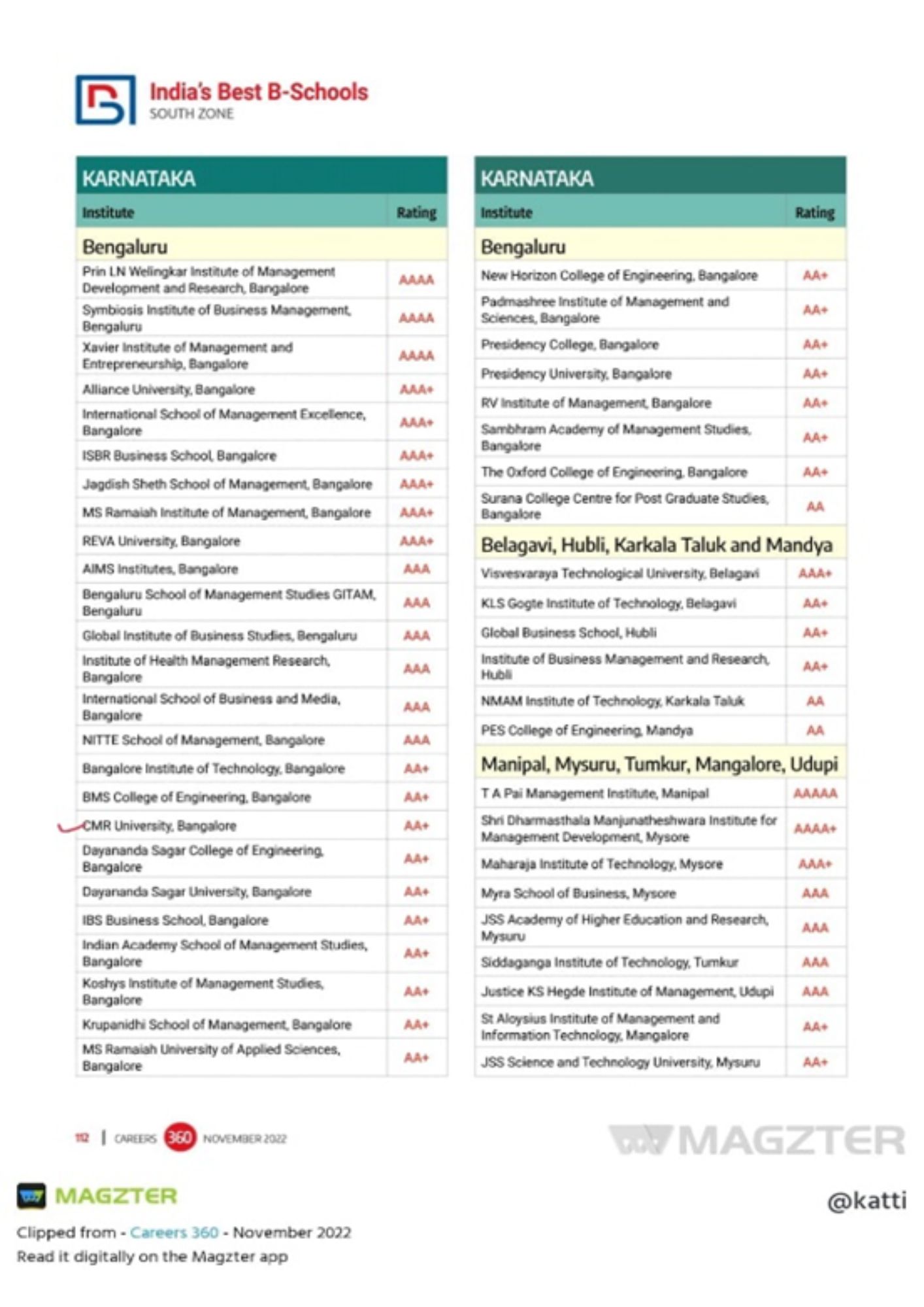 - Best Eng. Colleges South Zone Careers 360 Ranking 2023