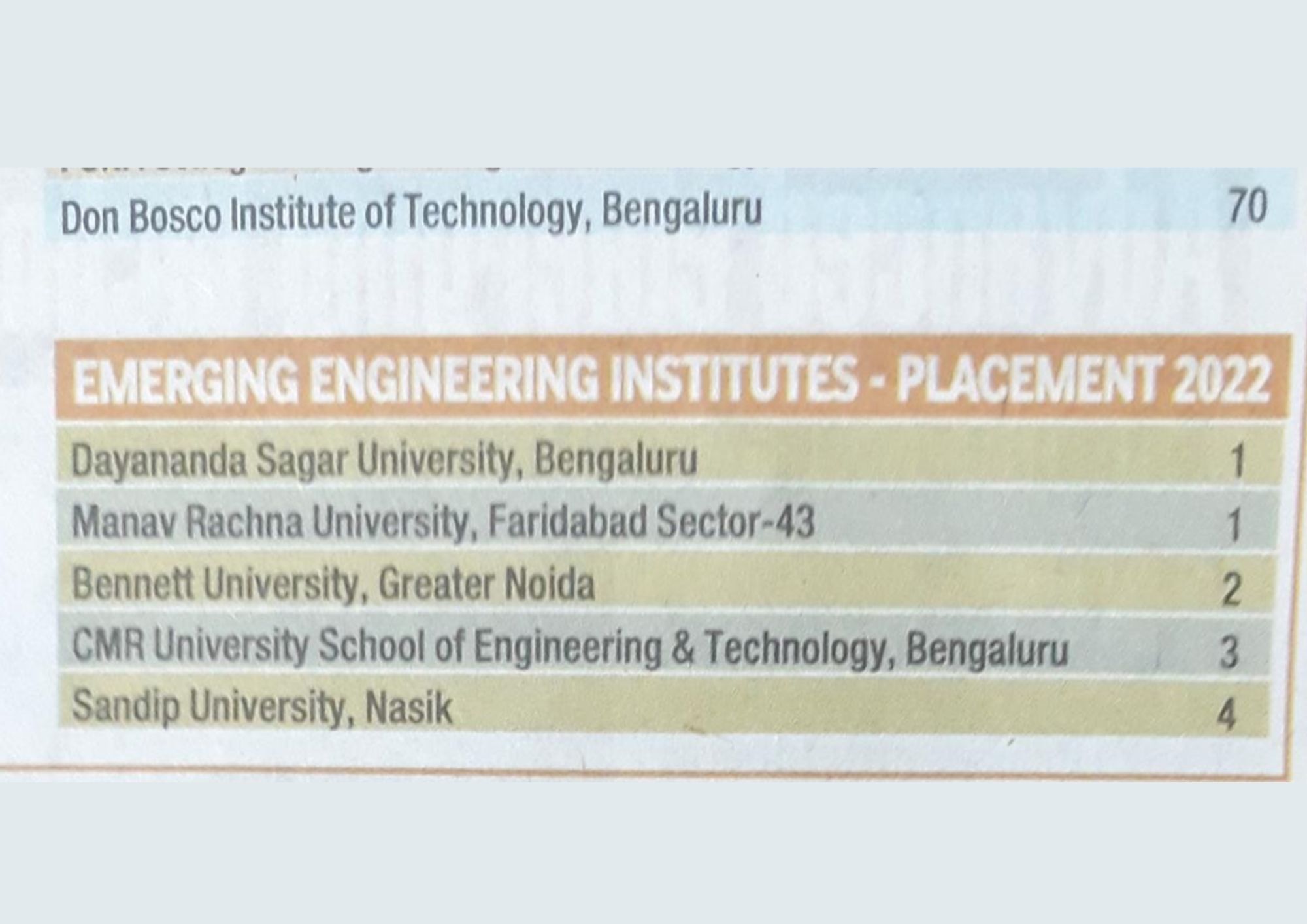 - School of Management,CMR University, Bengaluru. – BSchools Emerging All India, 23 Rank
