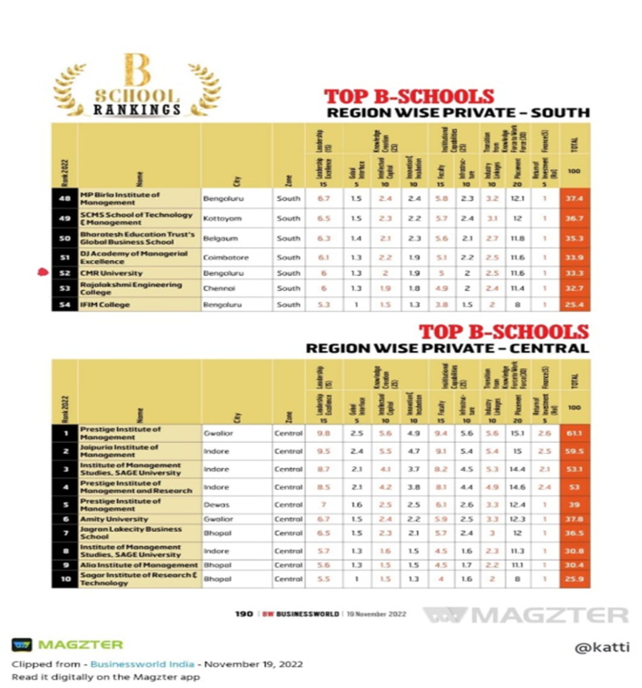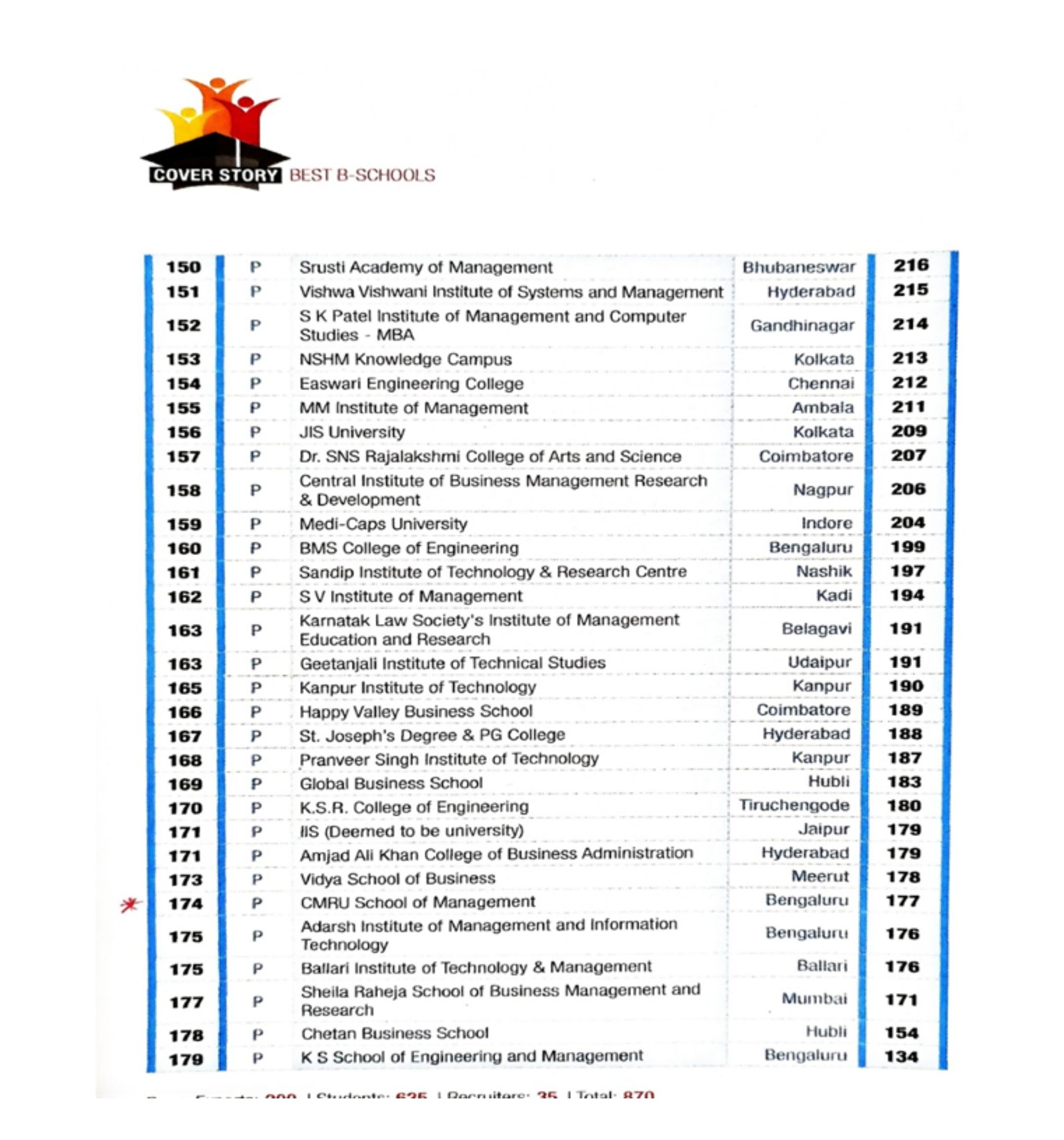 - School of Management,CMR University, Bengaluru. – BSchools South Zone, 62 Rank